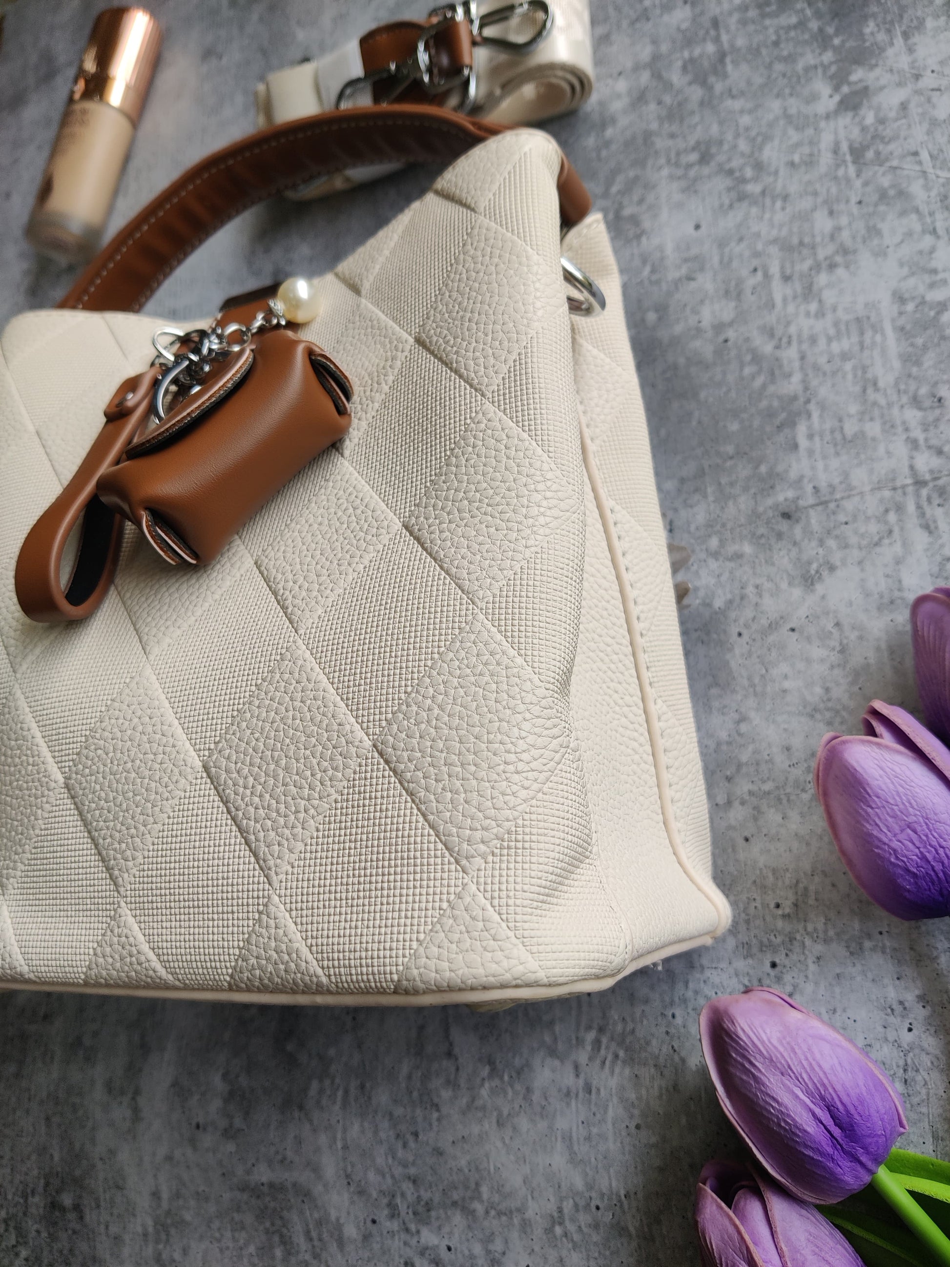 Key Features:- Variants: Quilted Beige with Tan Trim & Classic Black Pebbled Texture