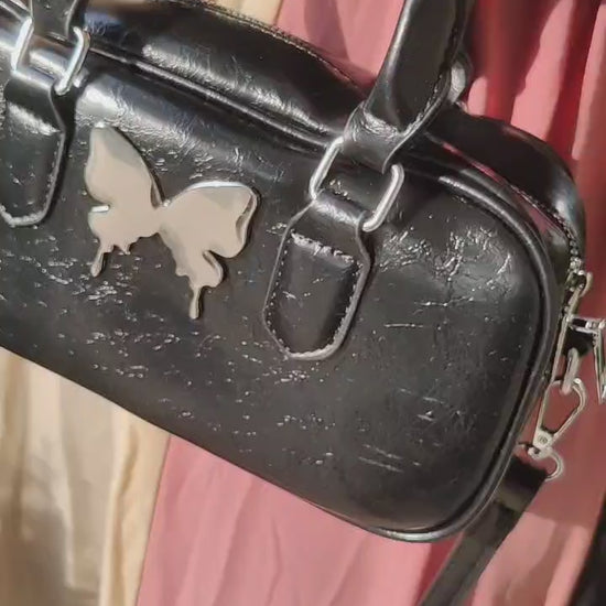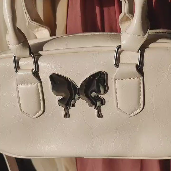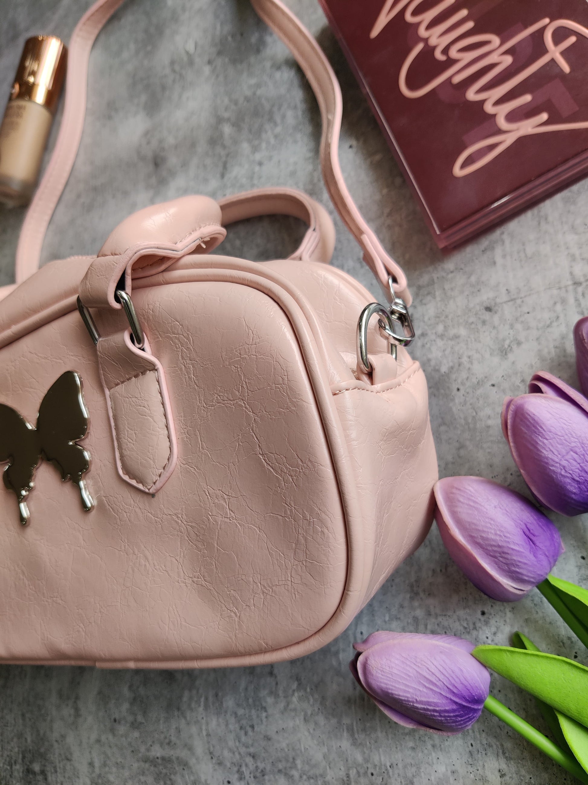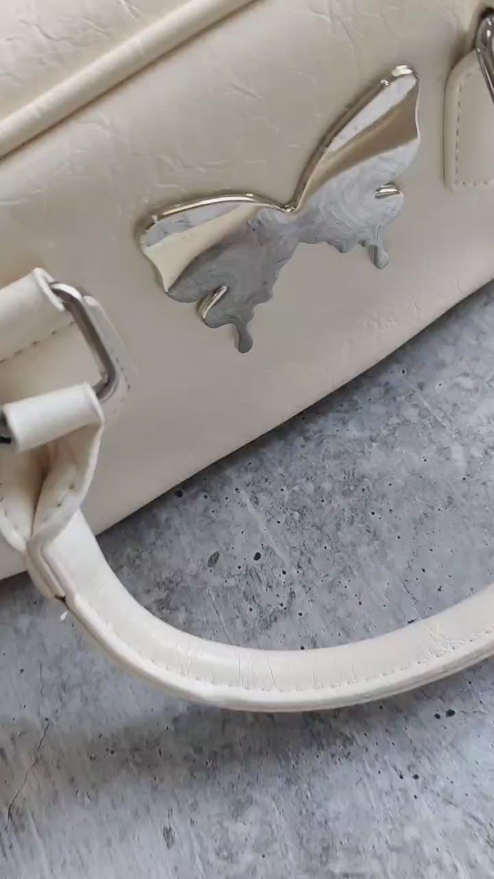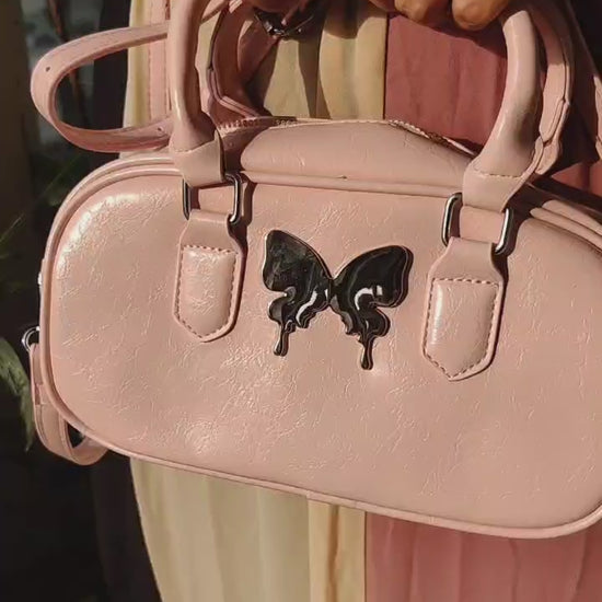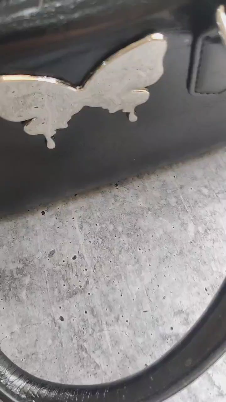 Add a whimsical twist to your everyday look with the Butterfly Charm Paula Sling Bag by RêVE– where cute meets classy. Available in soft Pink, Classic Black, and Creamy White, this compact accessory features a smooth faux leather body and a glossy metallic butterfly emblem that steals the spotlight.