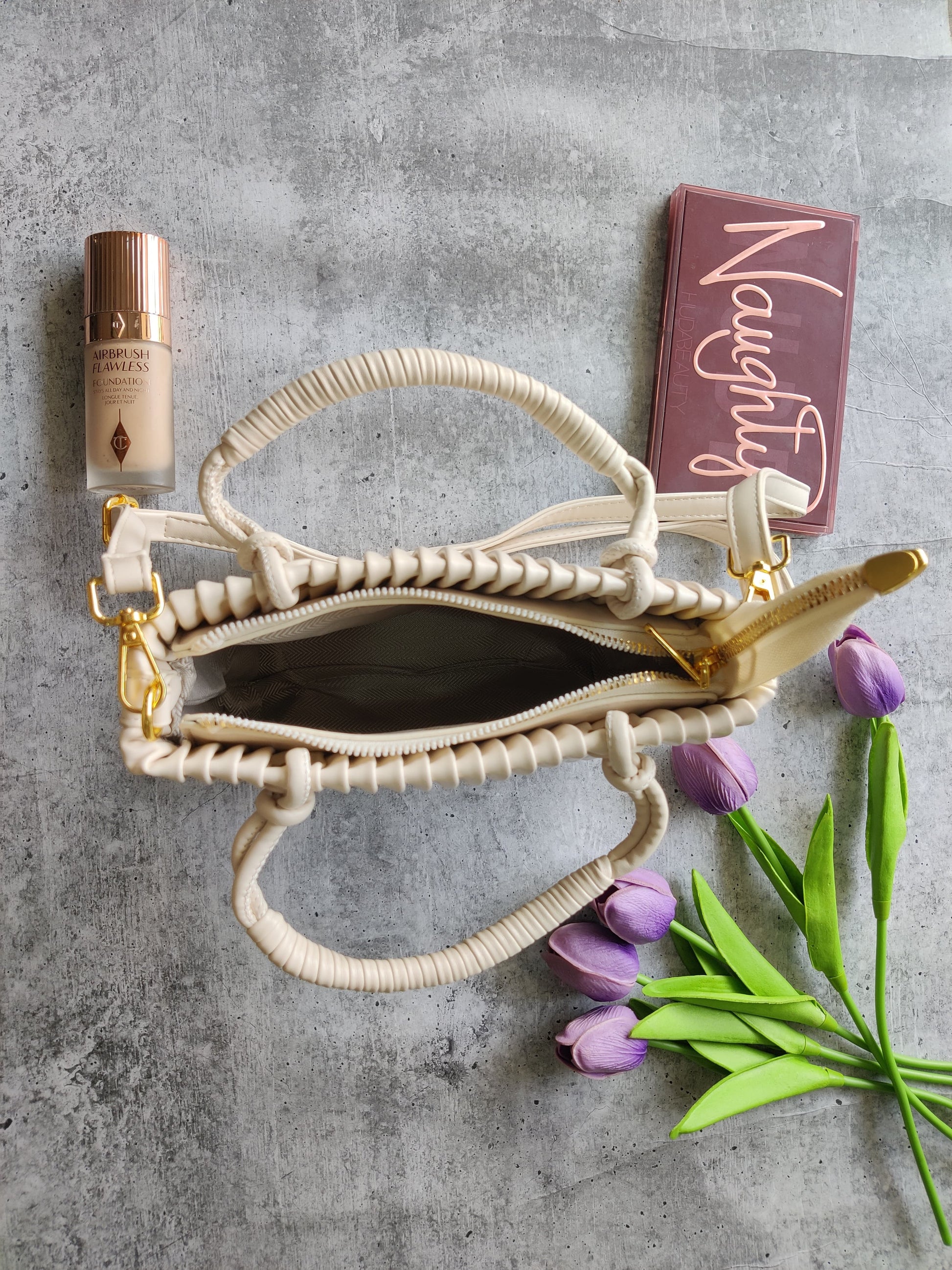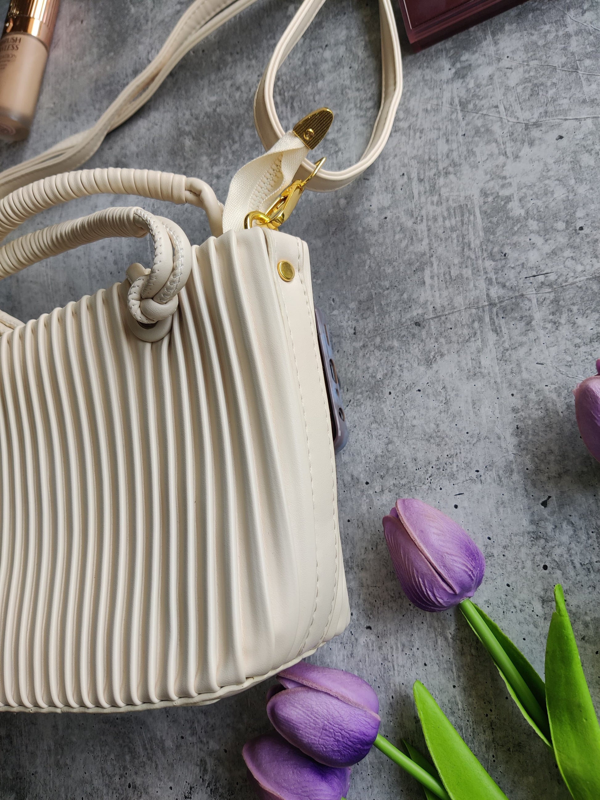 Chic meets playful with our Pleated Sling Bag by RêVE– the ultimate arm candy for trendsetters who love texture and versatility. Available in four elegant hues – Off White, Blush Pink, Classic Black, and Nude Beige – these bags add a dash of sophistication to any outfit.