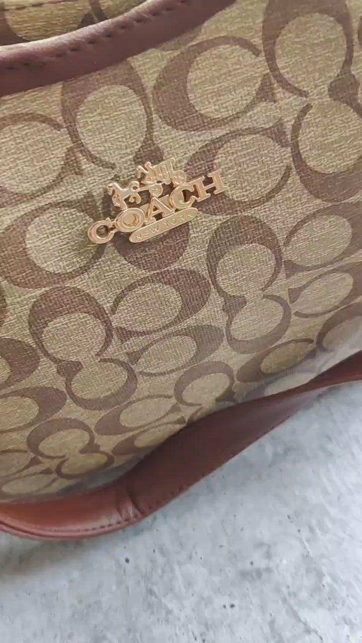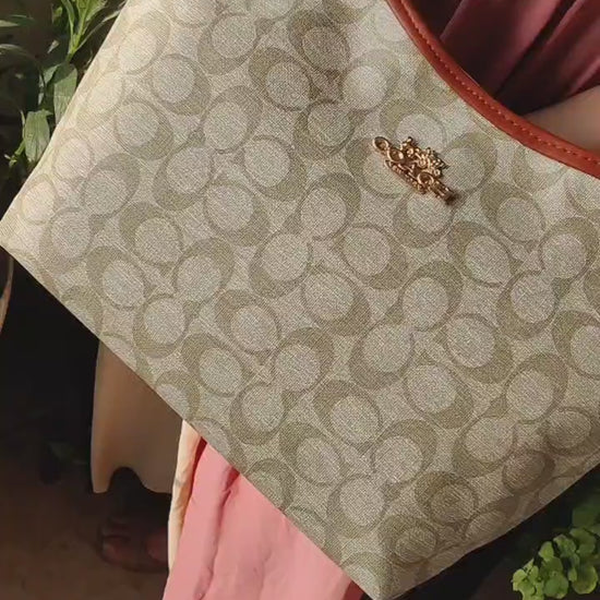 Elevate your accessory collection with the Sophie Shoulder Bag, a timeless piece that exudes sophistication and style by RêVE. Crafted from durable canvas with iconic monogram design in a classic tan color, this bag offers both practicality and elegance. The bag features a gold-tone chain for a touch of luxury and a leather trim for added refinement. With its spacious interior and versatile design, it's perfect for daily use or special occasions. The soft hobo silhouette ensures comfort, while the sturdy strap provides ease of wear.
